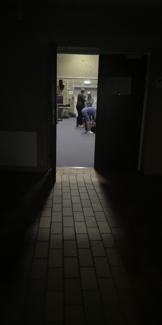 Im großen Saal mit angrenzender Bühne, in den Fluren, im Treppenhaus und im Werkraum –