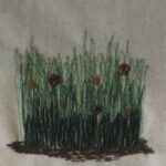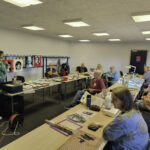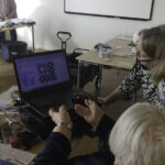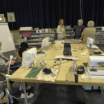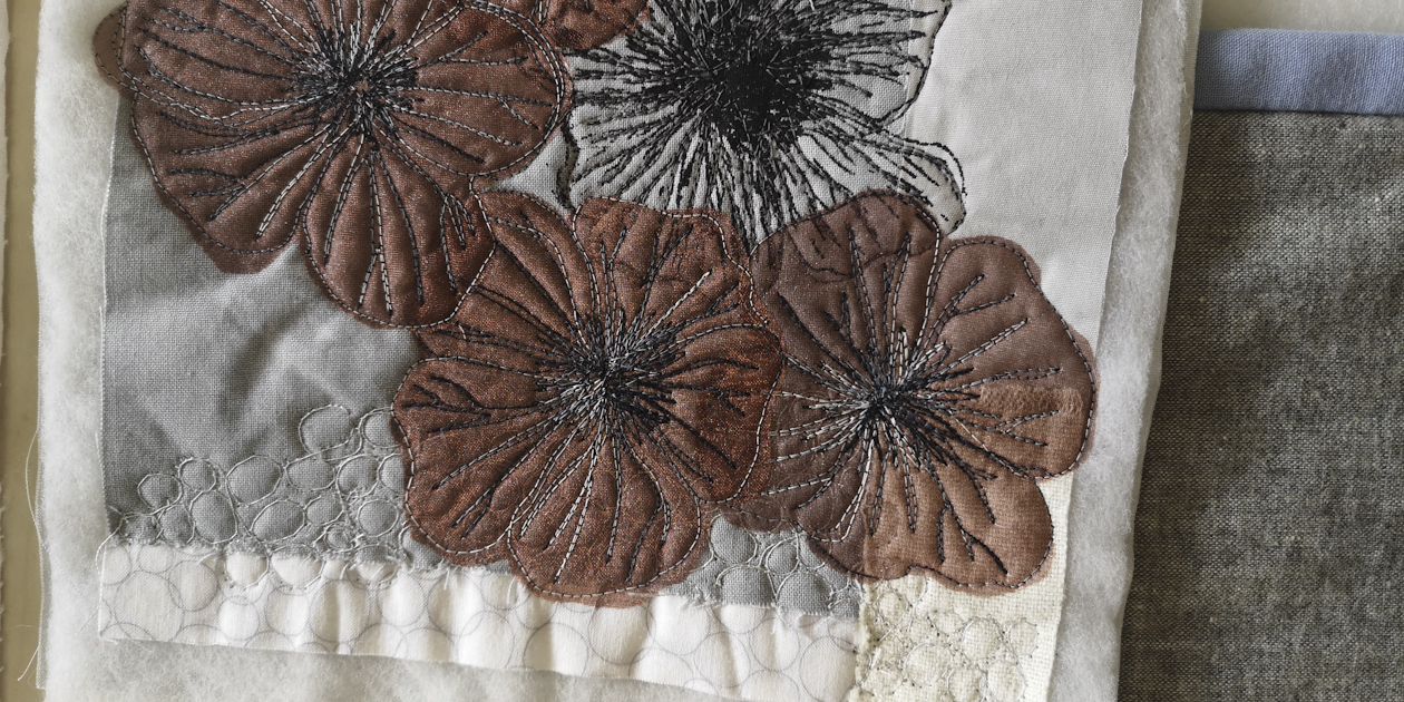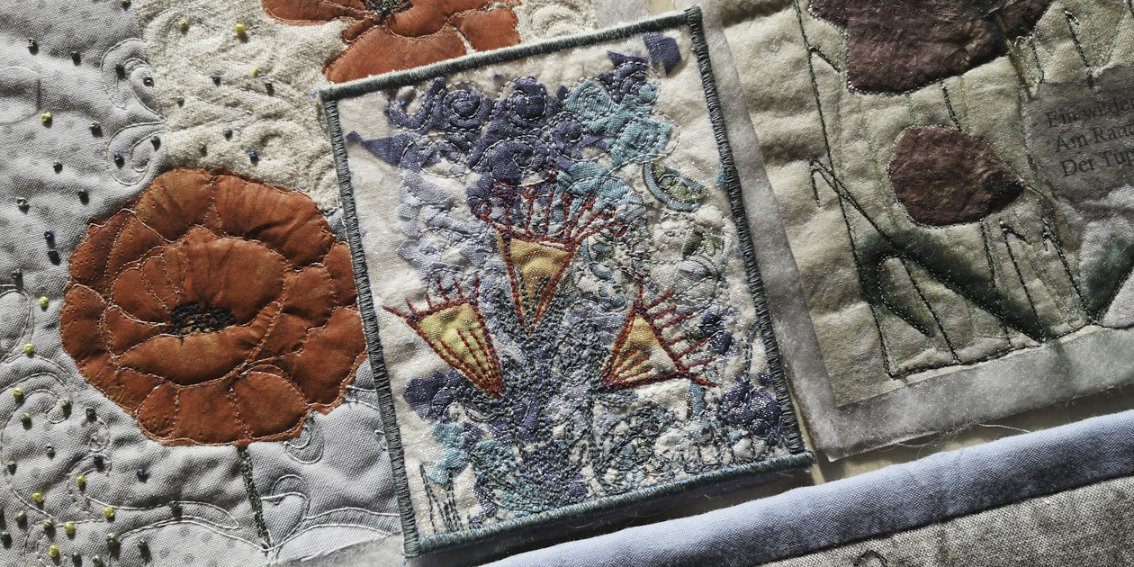Engagierte Kursleiterinnen (KL) brachten uns auch ein wenig patchworkfremde Fertigkeiten bei: „Malen mit der Nähmaschine“ durch Andrea Schöneich.