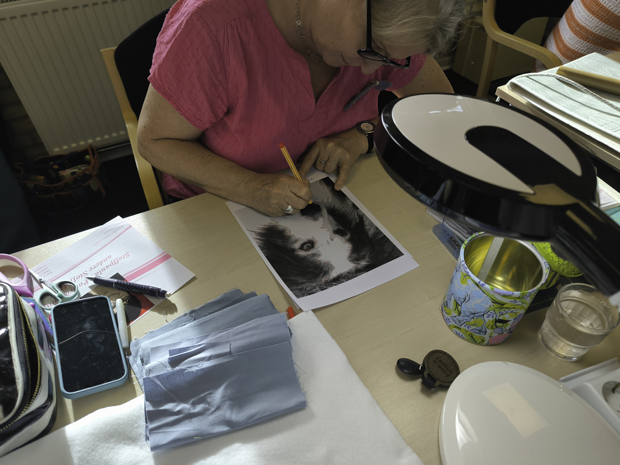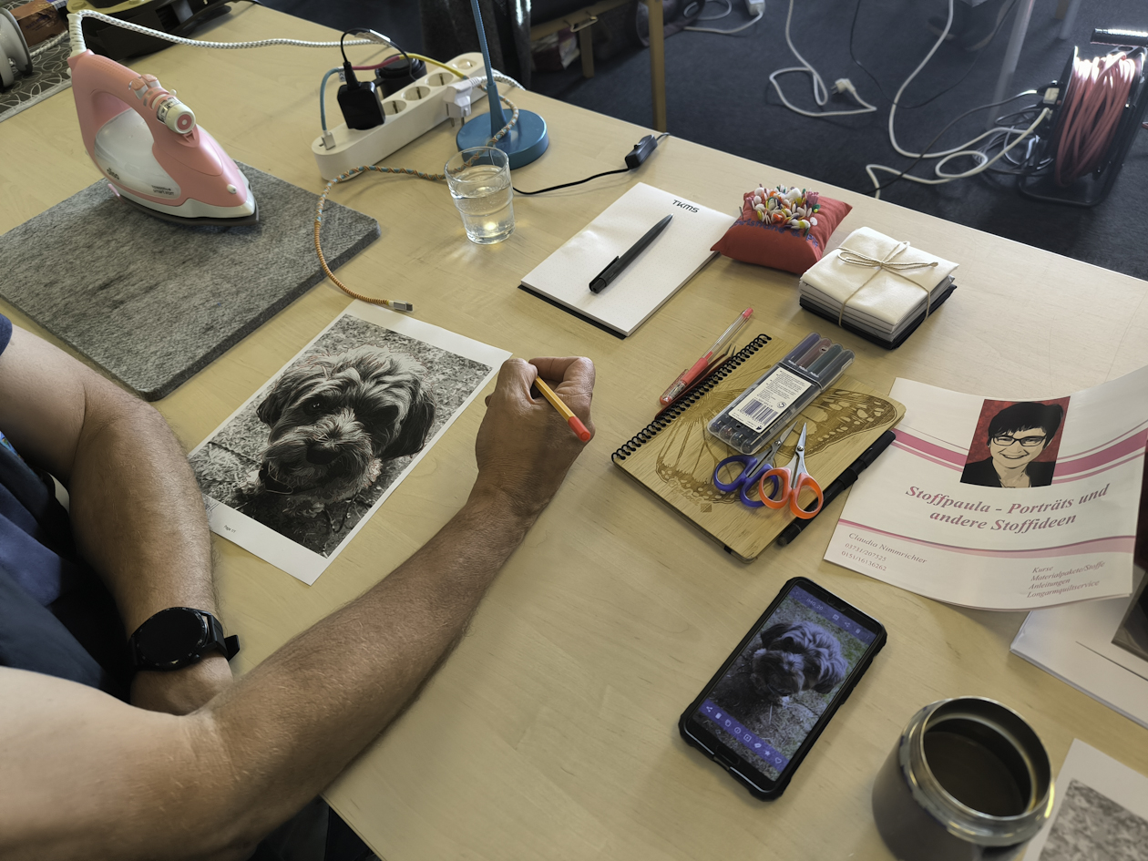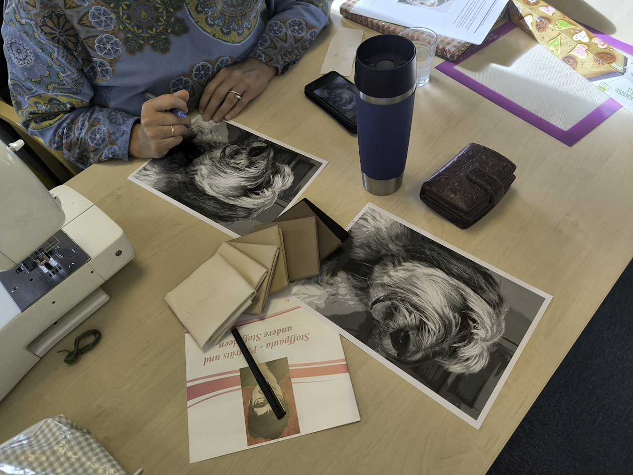 Und „Portraits aus Stoff“ von Claudia Nimmrichter. Beide jeweils einen halben Tag, so dass noch Zeit war, die erlernten Fähigkeiten während des Nachmittags zu festigen und auszubauen.