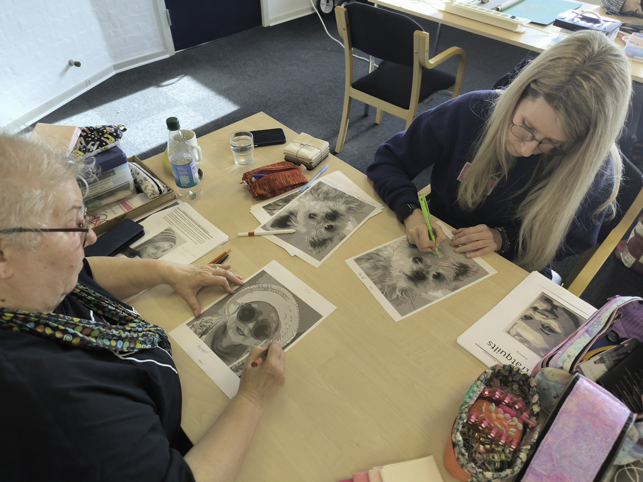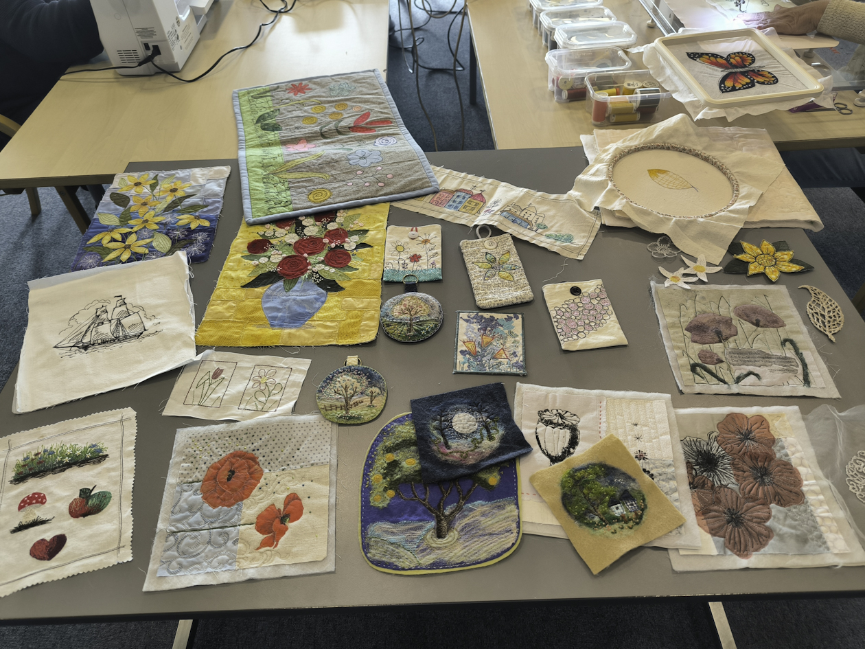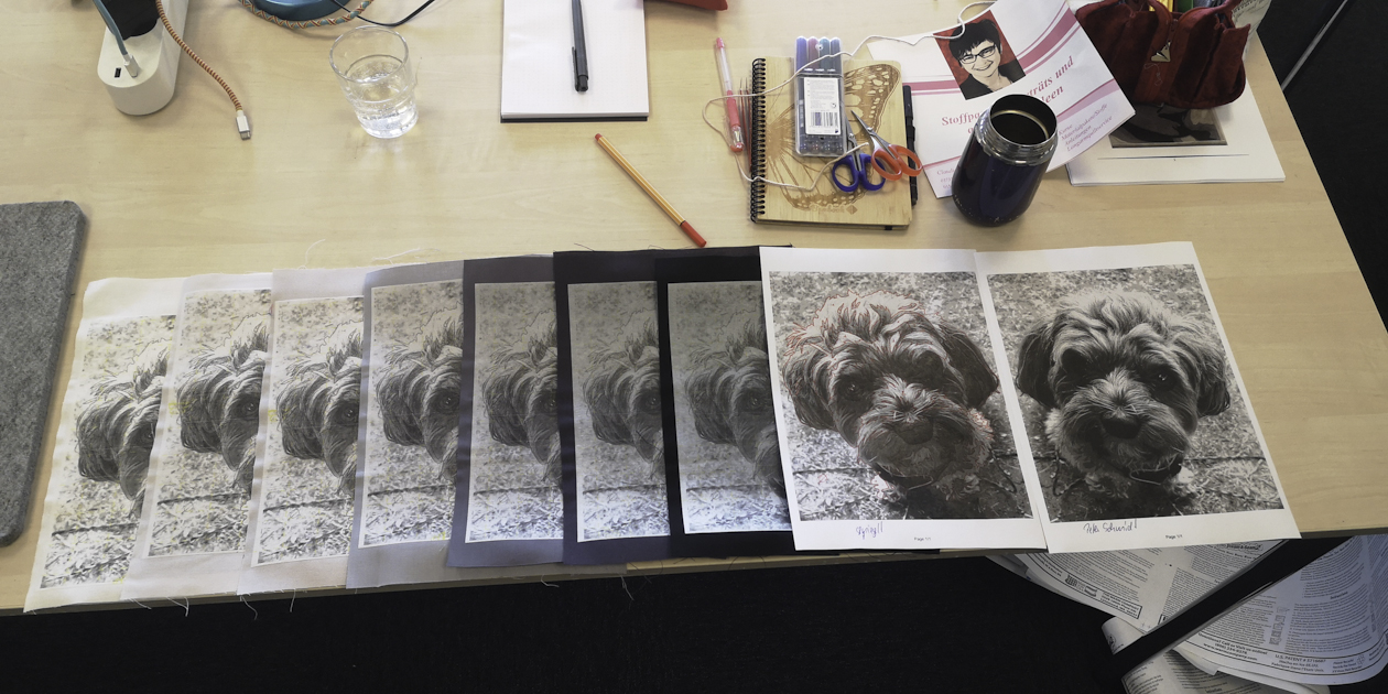 Und „Portraits aus Stoff“ von Claudia Nimmrichter. Beide jeweils einen halben Tag, so dass noch Zeit war, die erlernten Fähigkeiten während des Nachmittags zu festigen und auszubauen.