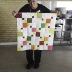 Bitte eure fertigen Miniquilts auf der Rückseite mit eurem Namen versehen und bei einem