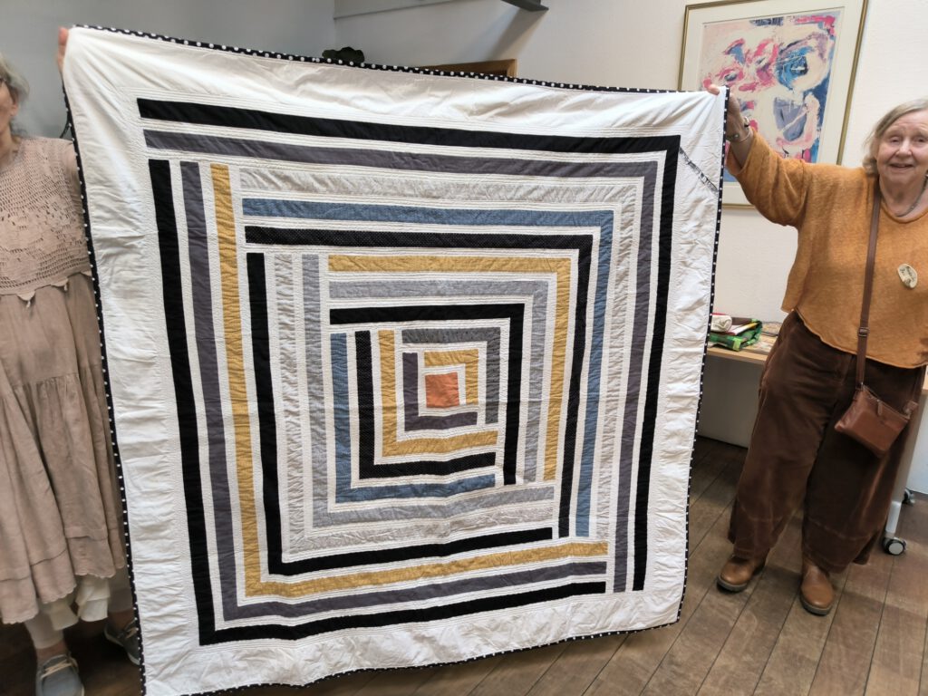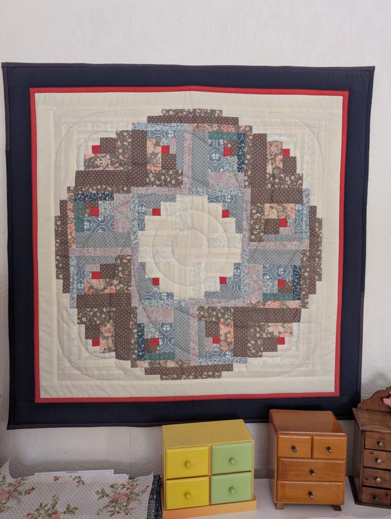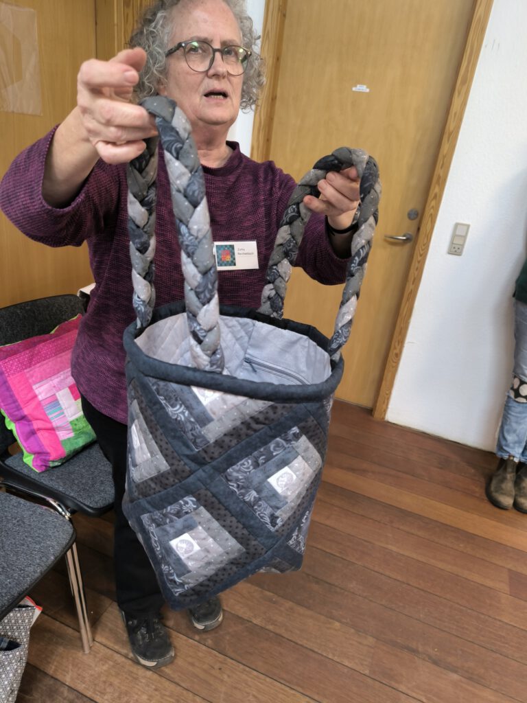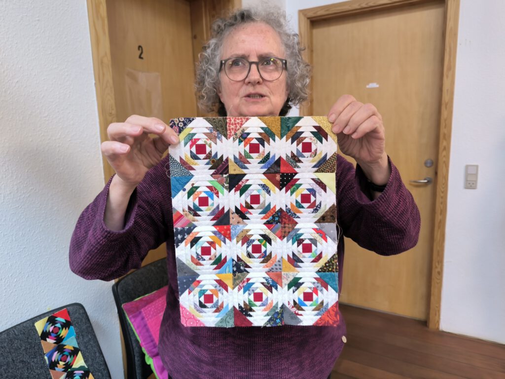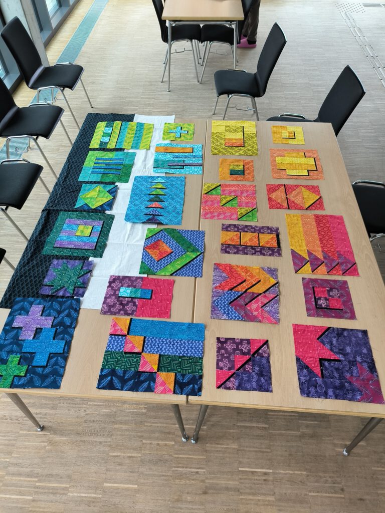 Hier gab es wunderbare Quilts, Taschen,… mit dem Block „Log-Cabin“ zu bewundern.