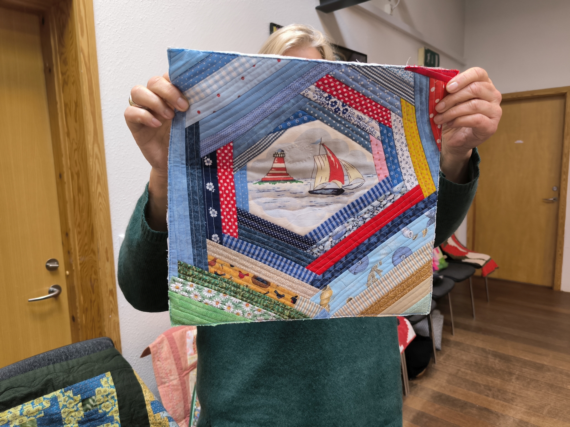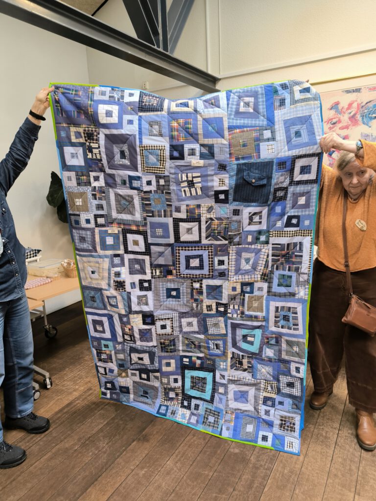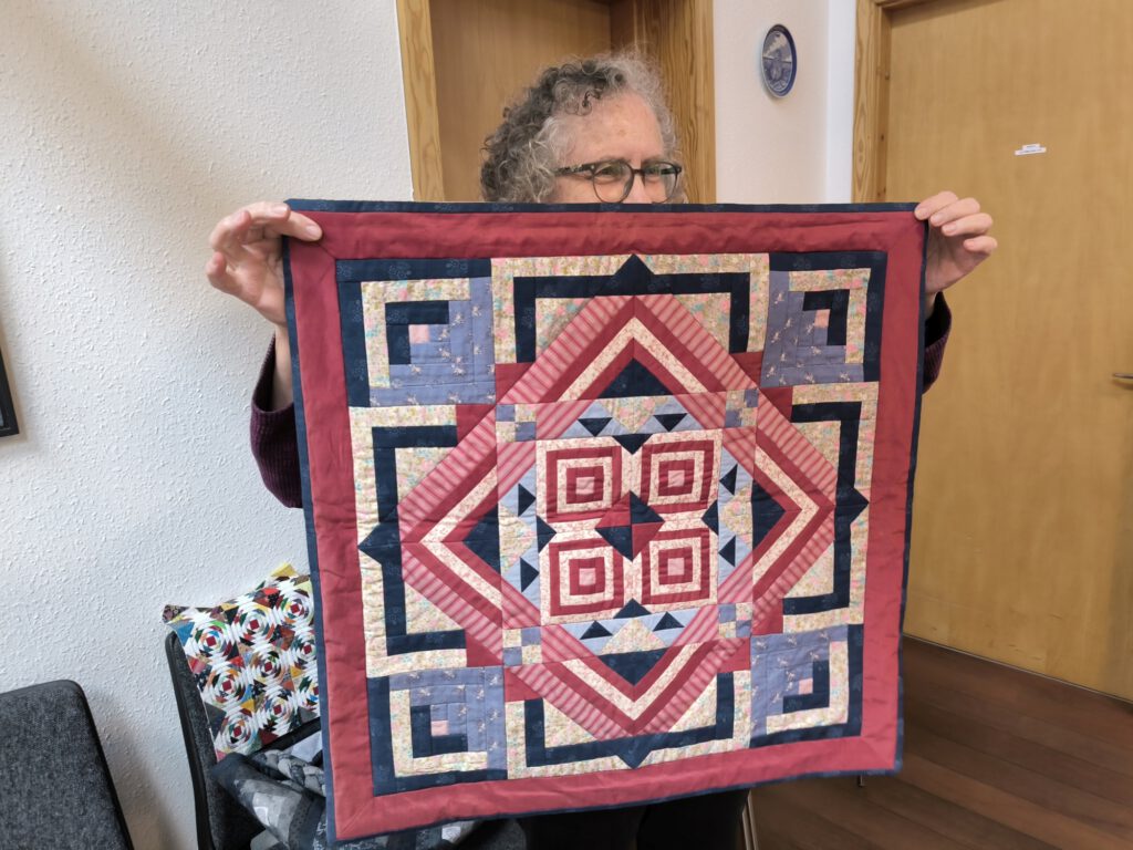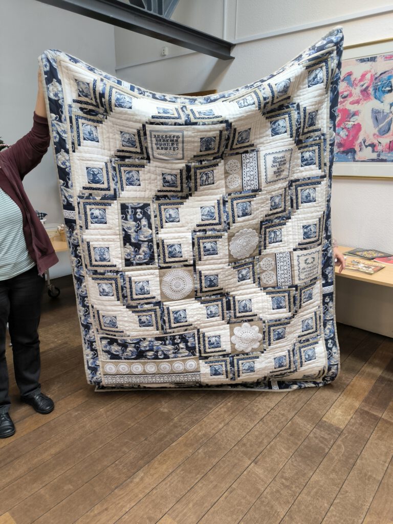 Hier gab es wunderbare Quilts, Taschen,… mit dem Block „Log-Cabin“ zu bewundern.