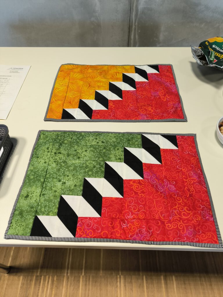 Die Ergebnisse unserer „ Rot-schwarzen Miniquilt Challenge“ waren ebenfalls ausgestellt und beim