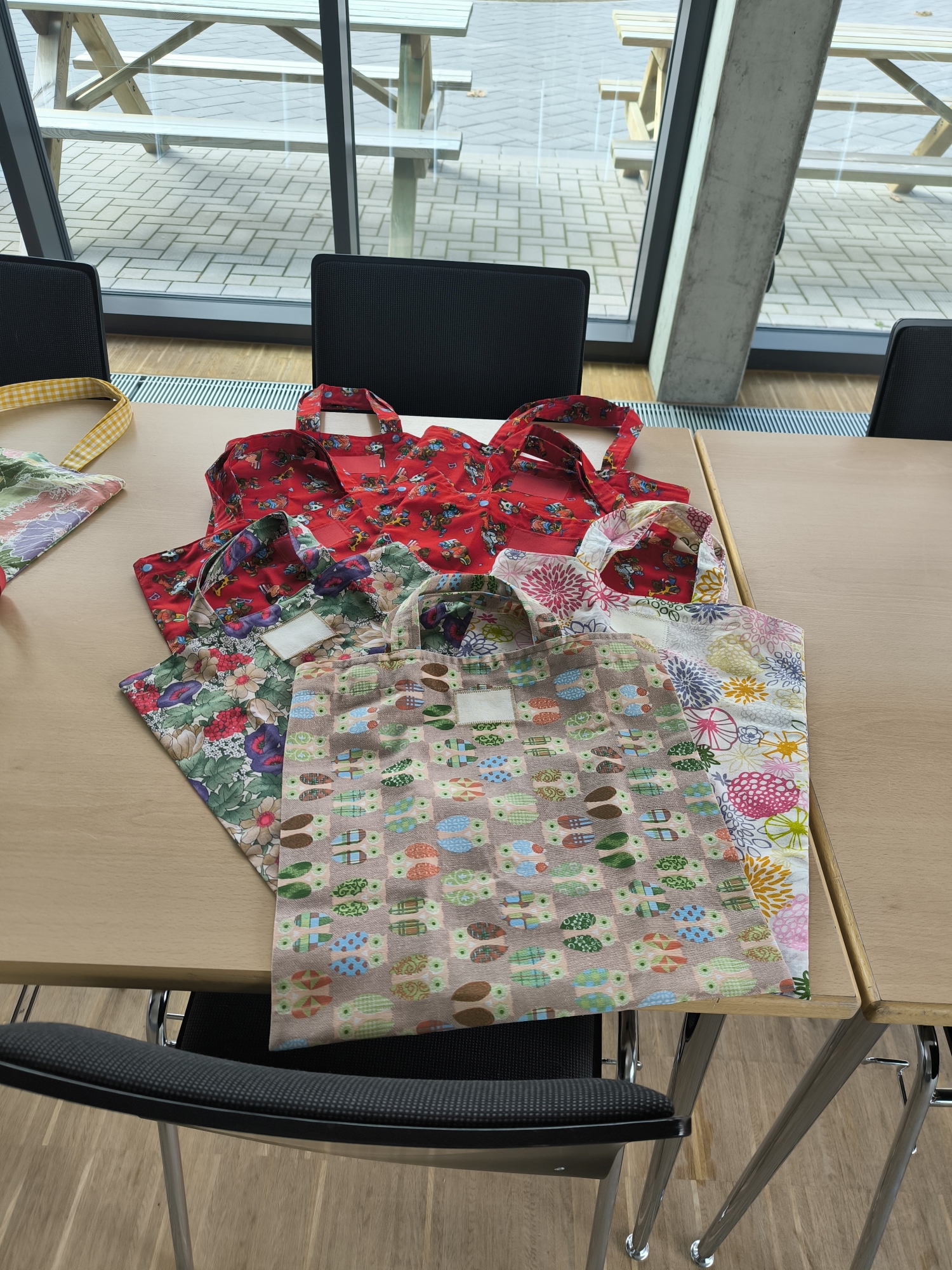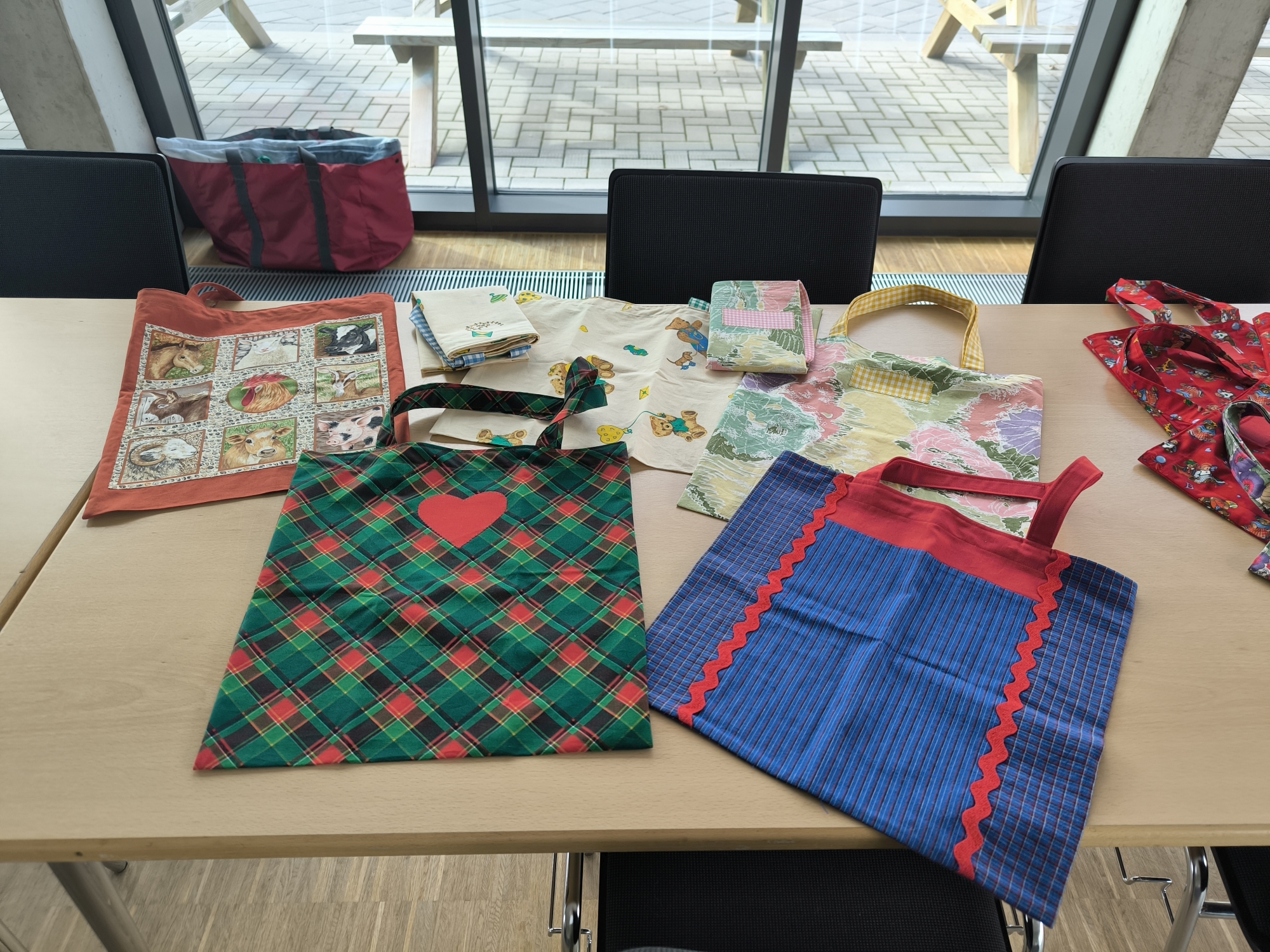 Es wurden neue Projekte gestartet, gut abgelagerte Projekte weiterbearbeitet und einiges davon sogar fertiggestellt. Es gab intensive Gespräche z.B. über: Wie lege ich was aus oder welche Farbe passt wozu! Auch eine etwas müde gewordene Nähmaschine, konnte dank Melanie wieder zur Arbeit überredet werden.